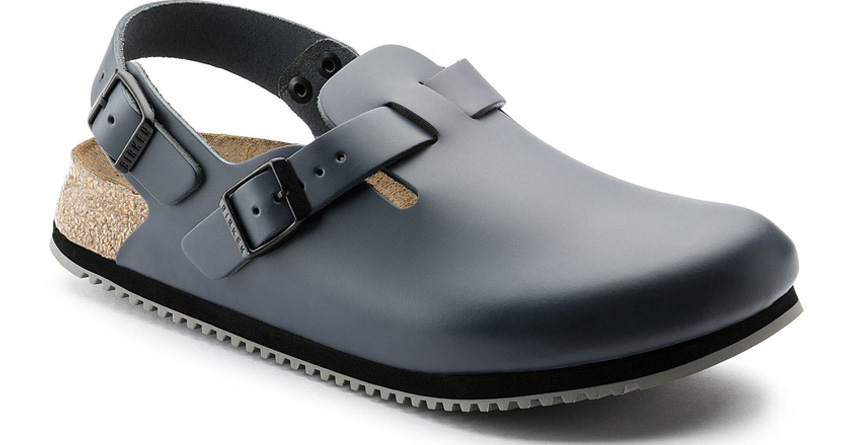 Con el Tokio Super Grip, BIRKENSTOCK desarrolló un zueco para trabajos que exigen gran resistencia tanto del usuario como de sus pies. Su suela Super Grip proporciona una rodadura ideal y es antideslizante. Una entresuela de EVA amortigua cada paso. La banda de rodadura especial de goma proporciona una firmeza palpable. Esta estabilidad se ve reforzada por la correa trasera ajustable. Esto es algo muy apreciado por quienes trabajan en el ámbito sanitario, en cocinas y en el personal de servicio, quienes suelen pasar horas de pie. La suela del Tokio Super Grip ha sido probada para garantizar su resistencia al deslizamiento según la norma EN ISO 20347:2012.