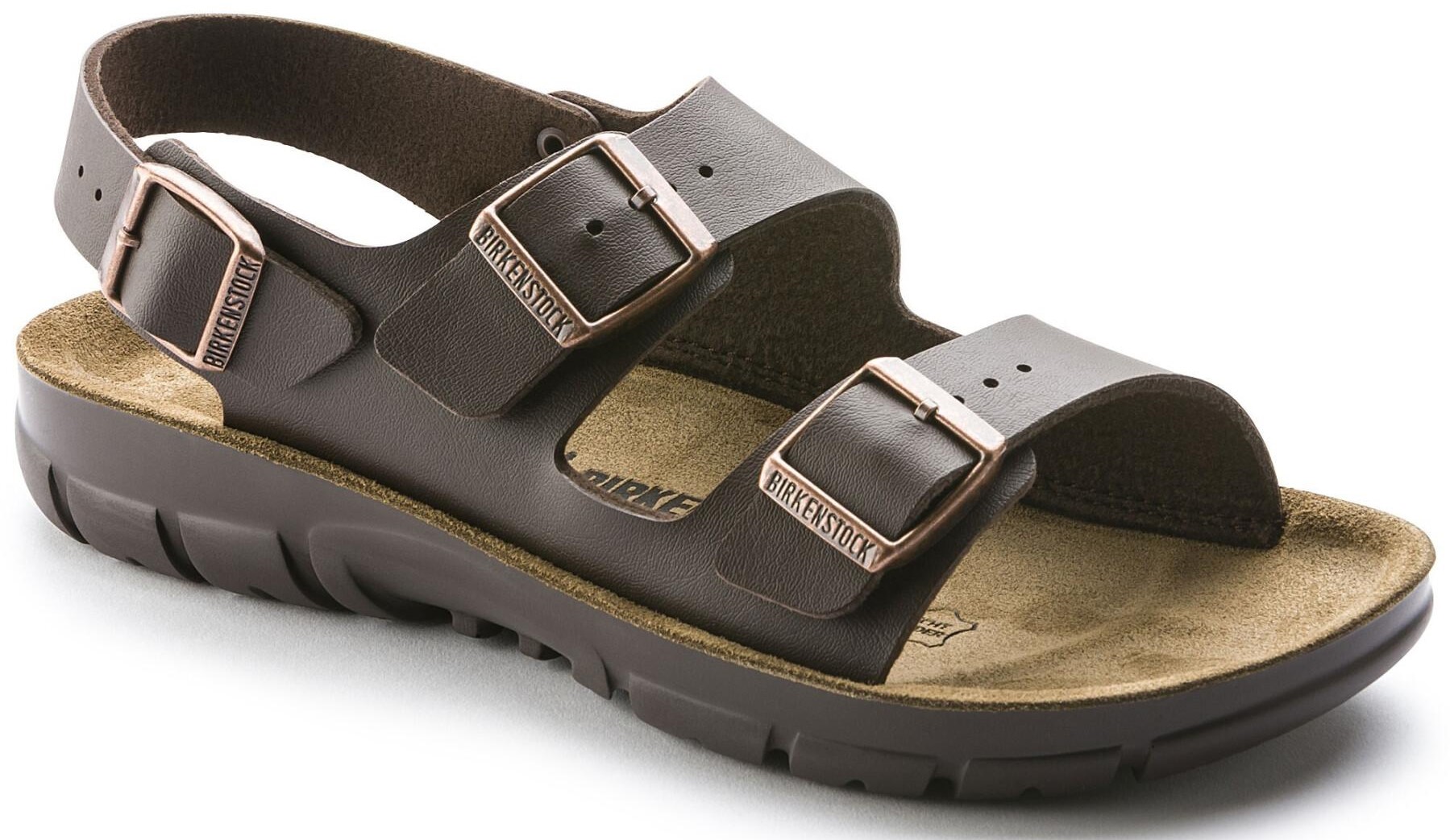 El modelo Kano combina la forma anatómica de la plantilla original de BIRKENSTOCK con una almohadilla de látex adicional y una suela de poliuretano con amortiguación de aire. Su pulsera en el tobillo evita que la parte trasera del pie resbale y proporciona una sujeción lateral adicional junto a las dos correas del empeine. El material destaca por su flexibilidad, resistencia y fácil cuidado.