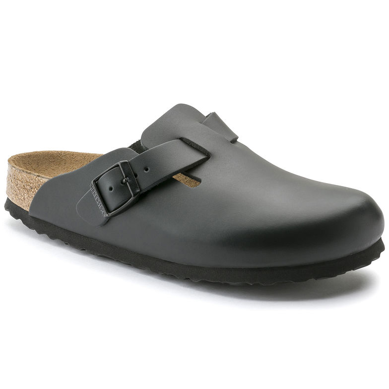 El zueco Boston, un clásico entre los modelos de BIRKENSTOCK, se muestra aquí en una variante de alta calidad con una caña de elegante piel lisa. Con ayuda de la correa integrada en el borde superior de la caña y de una robusta hebilla de metal, el zueco se adapta de forma individual a todos los pies.