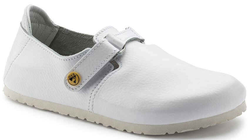 Las descargas electrostáticas pueden dañar componentes electrónicos sensibles en trabajos con semiconductores. La versión ESD del modelo Linz garantiza en este campo la mejor protección posible frente a daños por tensiones eléctricas, pues efectúa una descarga suave permanente. El área delantera del calzado, cerrada y confeccionada en piel sin alisar, protege frente a lesiones por golpes y resulta especialmente fácil de limpiar. El zueco se completa con una sujeción óptima al pie gracias su correa en el empeine con ajuste individual mediante cierre adhesivo. Todos los modelos ESD de BIRKENSTOCK están comprobados conforme a las directrices DIN EN 61340 y cumplen los requisitos para áreas ESD de 1,0 x 105 hasta 3,5 x 107 ohm.